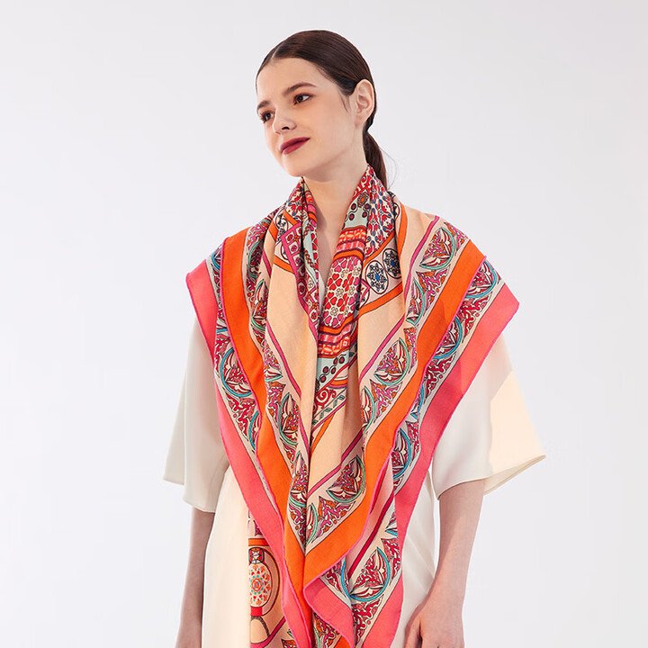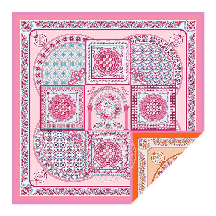 By utilizing advanced silk technology developed independently – double-sided same flower but different color printing technology, high-precision positioning technology, silk scarves present completely different color schemes on both sides of the same pattern. Uniform and rich colors, finely presented complex patterns.